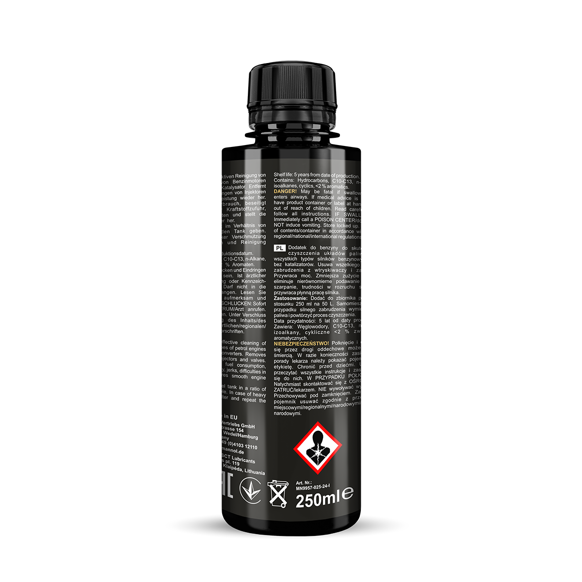 Universal cleaner for fuel systems of gasoline engines (atmospheric and turbocharged). Designed for multipoint injection (MPI) and direct (GDI) injection engines, suitable for carburetor engines. Developed with the latest generation detergent. Recommended for gasoline engines equipped with exhaust gas cleaning systems, including catalytic converters.