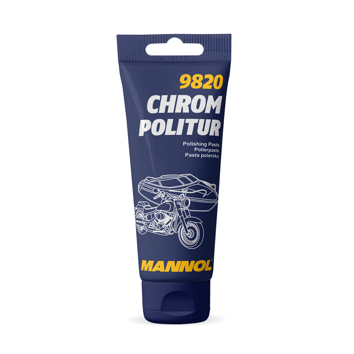 Application: apply a small amount of MANNOL Chrom Politur to a thoroughly cleaned surface, rub it into the surface in a circular motion with a cloth or sanding sponge and rub it with the same circular movements. Clean the surface and finally wipe it thoroughly with a soft microfiber cloth until the surface is completely cleaned.