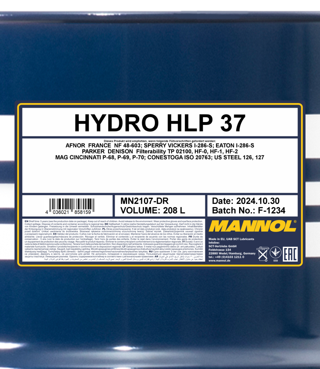- It contains antiwear, anti-oxidising, anticorrosion and antifoaming additives.