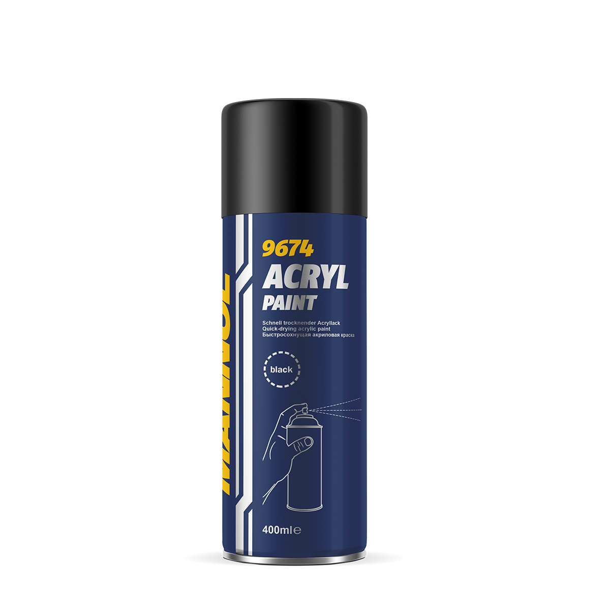 MANNOL Acryl Paint Black - quick-drying black matte paint for painting various surfaces of the car, made almost from any materials. It is created on the basis of synthetic acrylic resins. It is also intended for painting, decorative design and repair of small objects and household products, elements of landscape and interior design that are not subjected to mechanical loads.