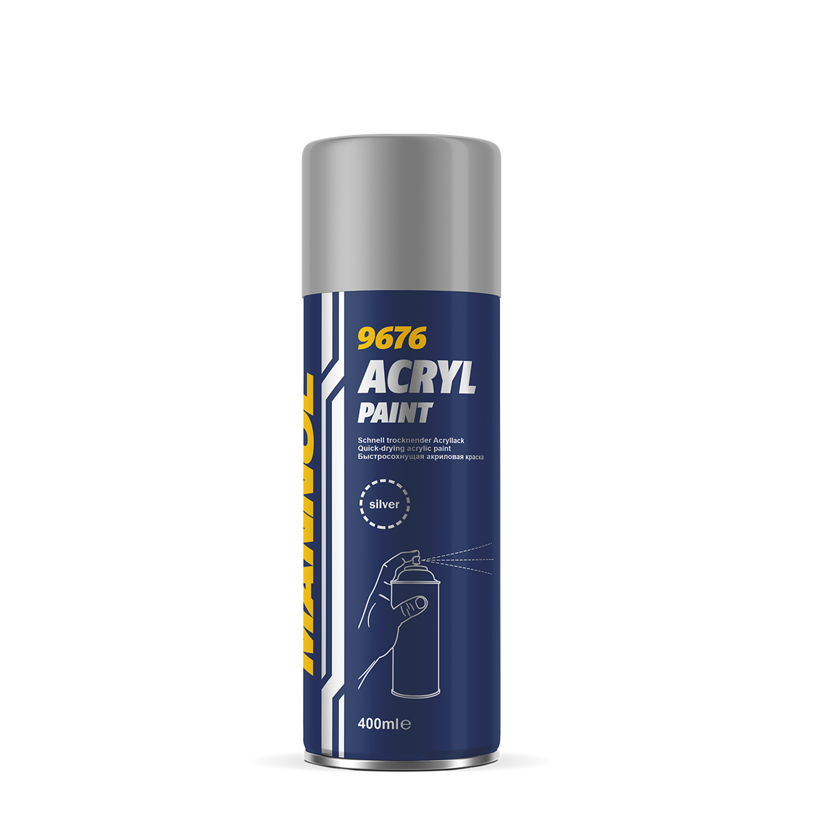 MANNOL Acryl Paint Silver - quick-drying silver paint for painting various surfaces of the car, made almost from any materials. It is created on the basis of synthetic acrylic resins. It is also intended for painting, decorative design and repair of small objects and household products, elements of landscape and interior design that are not subjected to mechanical loads.