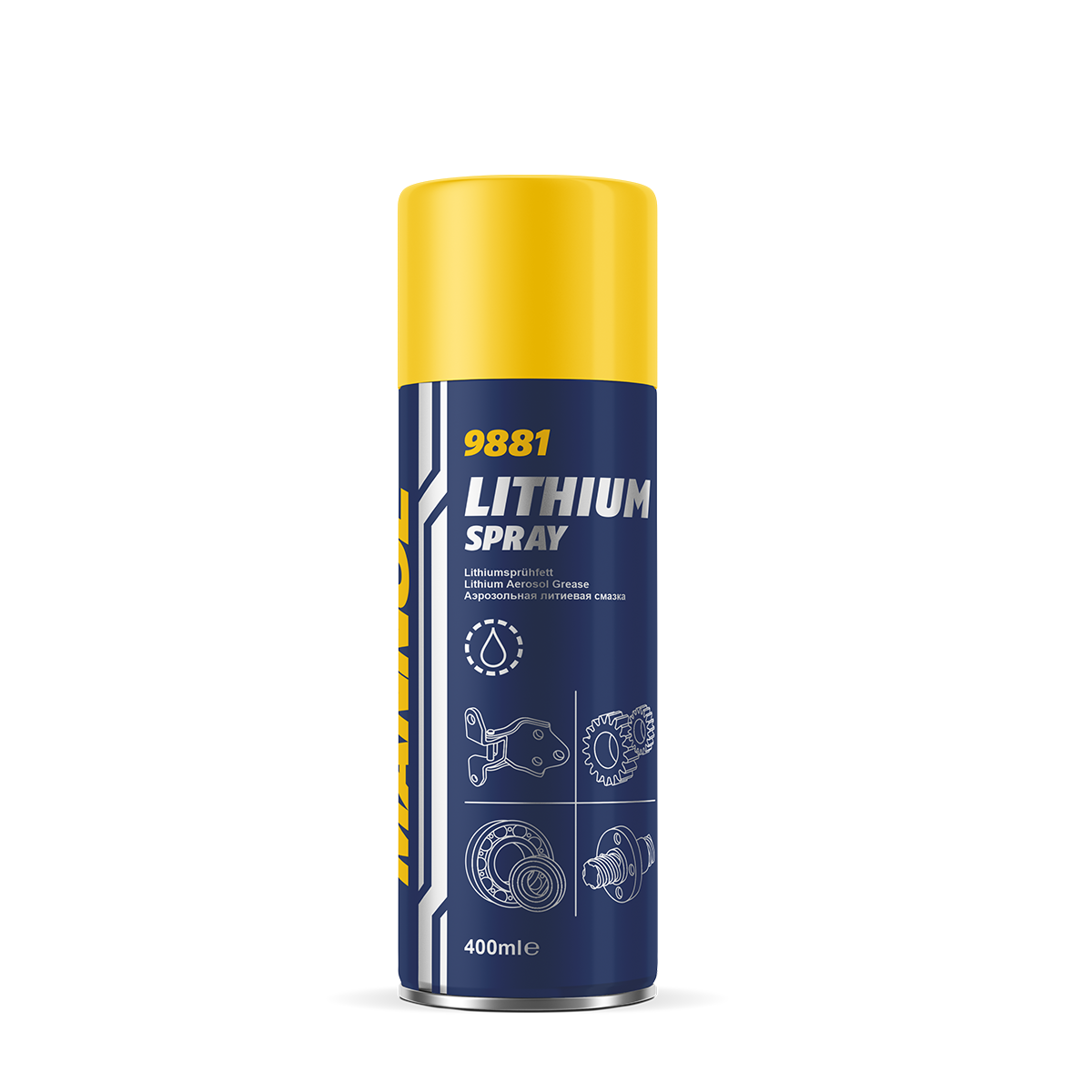 Universal water-resistant lithium grease in the form of an aerosol for lubricating metal, plastic and rubber parts of cars, motorcycles, electrical equipment and other equipment, as well as in the office and at home. Effectively protects against moisture, corrosion and wear.