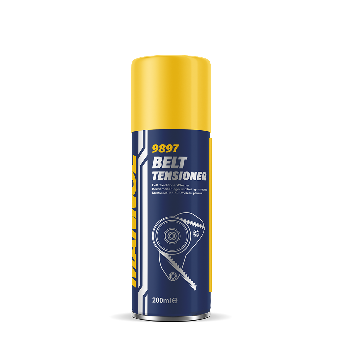 Belt Tensioner – means for care of driving belts: quickly, safely and effectively eliminates extraneous sounds (creaking, whistling, etc.) and slipping of belts, cleans them from dirt, removes traces of oils, restores elasticity, protects against drying and cracking. It is used for drive belts of alternators, air conditioners, power steering and other units.
