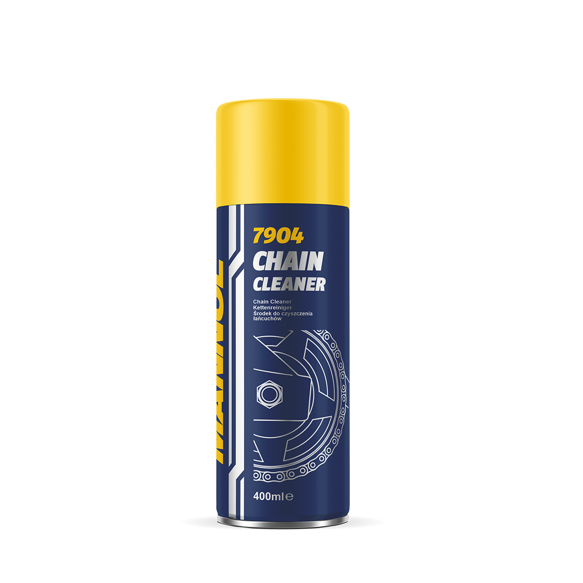 Application: Place a cloth or cardboard under the parts to be cleaned. Shake the balloon and spray the product liberally several times and let it drain. After evaporation (approximately 10 minutes), the chain becomes clean and fat-free, prepared for applying 7901 MANNOL Chain Lube.