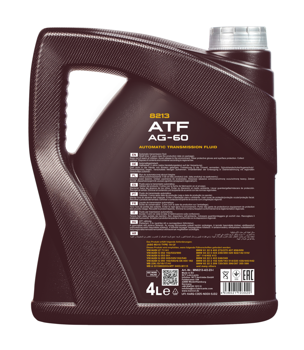 A special all-season synthetic transmission fluid (ATF) for modern 8-speed automatic gearboxes of all types and 6-speed automatic gearboxes of the ZF Group. It ensures a flawless operation of an automatic gearbox, guarantees minimal wear, a lasting service life of transmissions and fuel economy even under extreme loads. It was developed taking into account special requirements set by the VW Group.