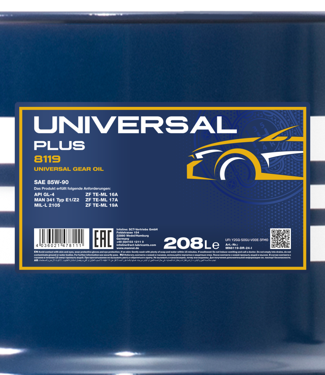 - A specially selected high-quality mineral base with the necessary viscosity over a wide temperature range, combined with the additive package of the latest generation, provides excellent anti-friction properties, which ensures significant fuel economy and very smooth gear shifting;
