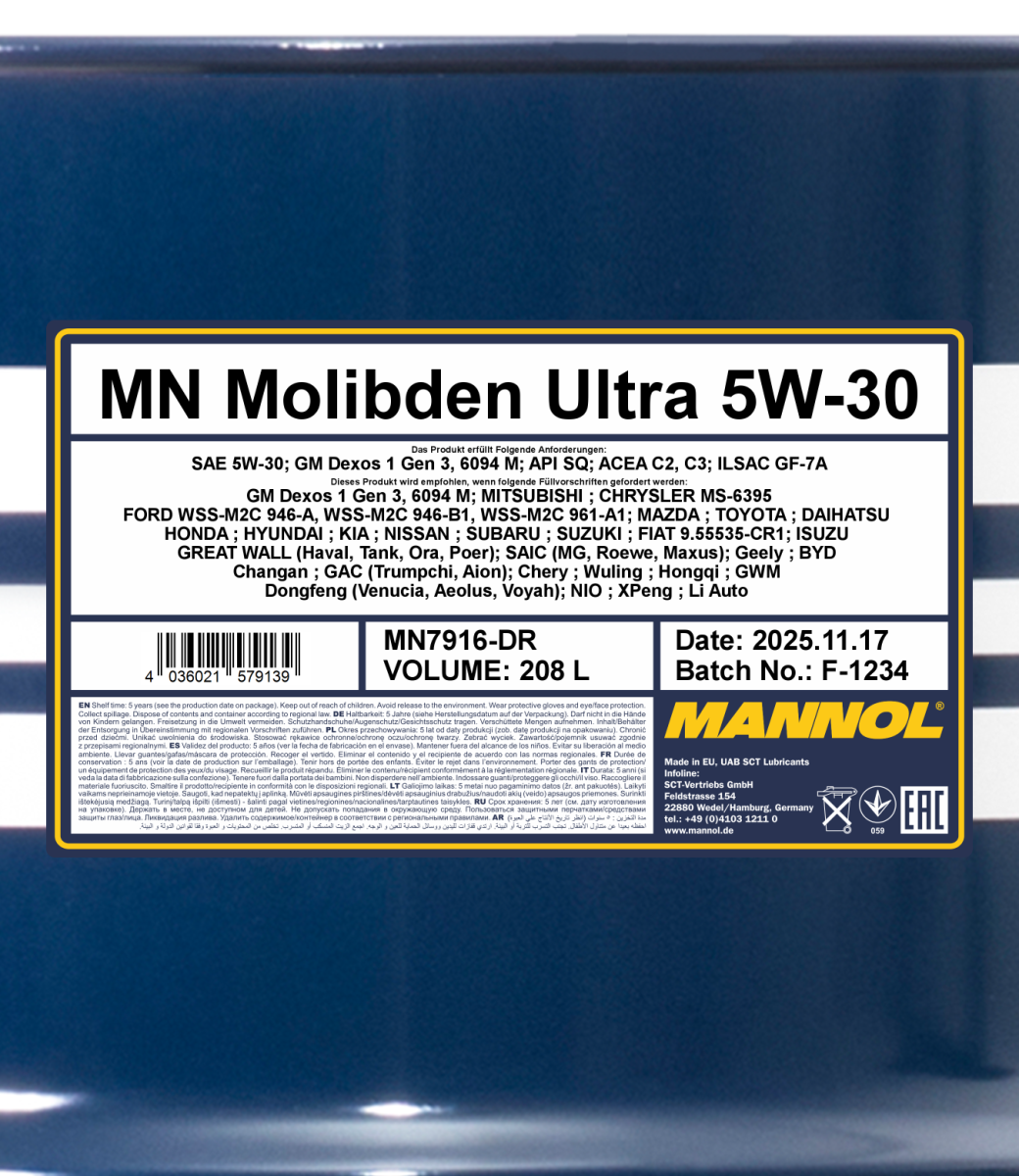 Designed for petrol and diesel engines of EURO V and EURO VI standards across a wide range of vehicles (passenger cars, light SUVs, vans, and light trucks) from Asian, American, and other manufacturers. Recommended for multi-valve engines with double overhead camshafts (DOHC), turbocharged engines with intercoolers, as well as any others operating under extended oil drain intervals and/or high loads.