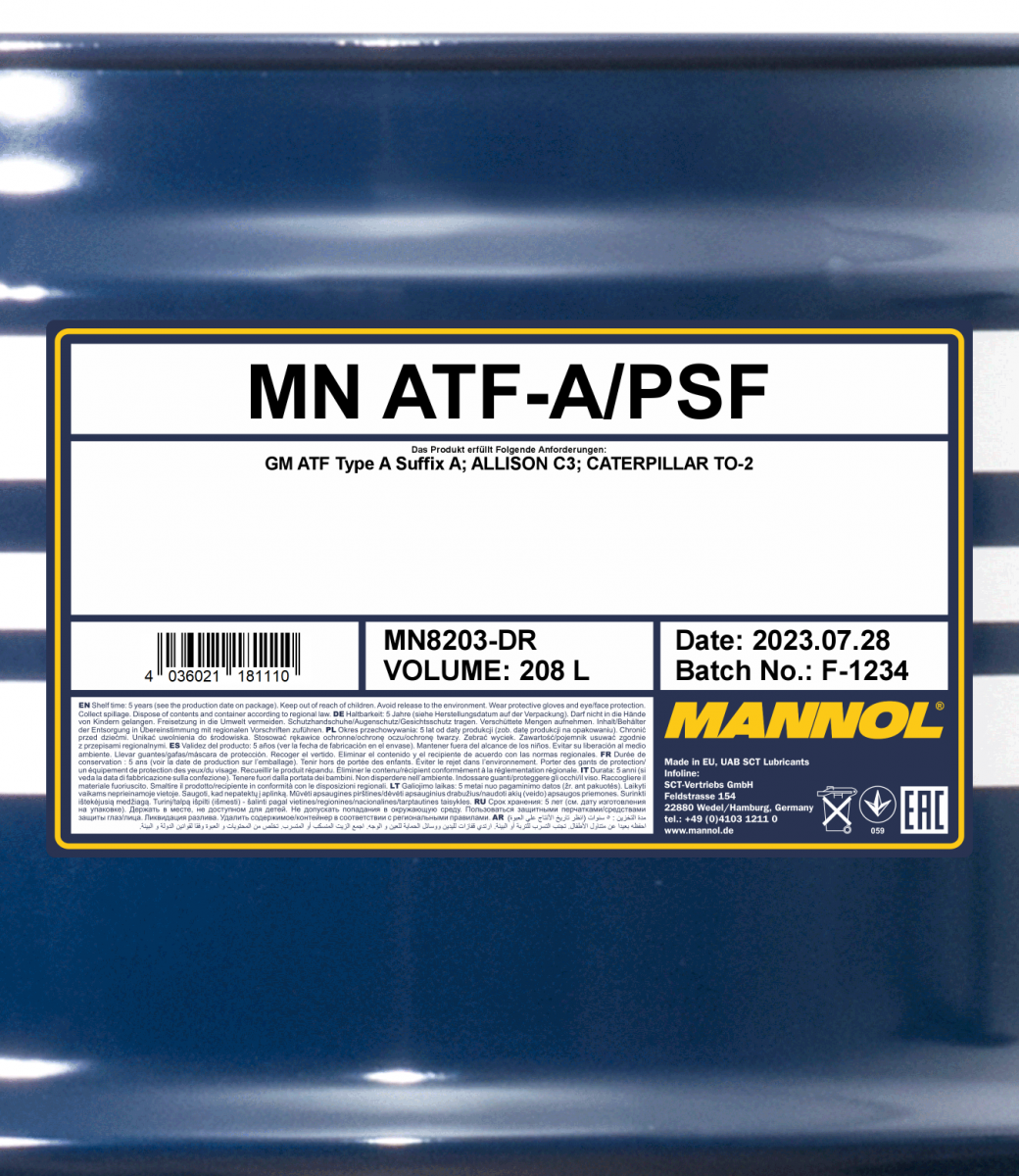 Universal all-season mineral oil for power steering systems, automatic transmissions of older generations, torque converters and hydraulic clutches of all types of vehicles. Designed following GM requirements.